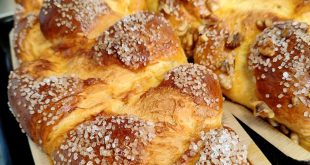 Домашен козунак с орехи на конци и хрупкава захарна коричка