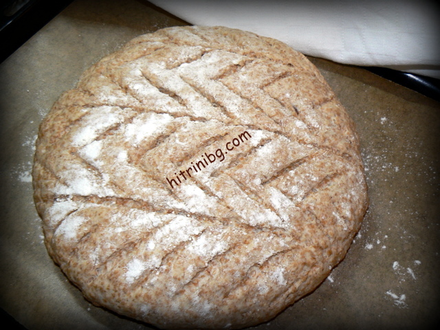Готовата изпечена пълнозърнеста питка завийте в кърпа и оставете 20-30 минути да почива. Този вид хлябове имат специфичен вкус и структура.