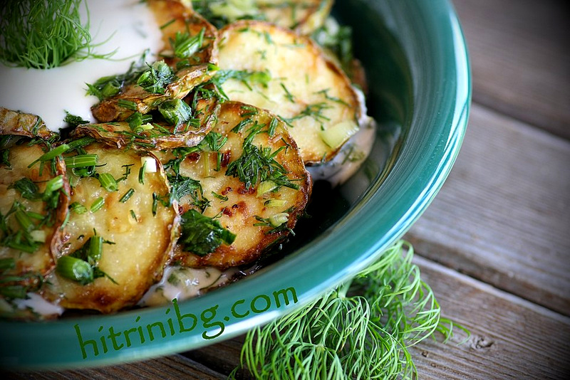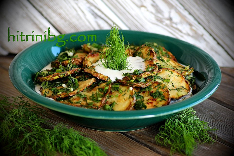 Направете индивидуални чинии или една голяма с вашите пържени тиквички с кисело мляко.