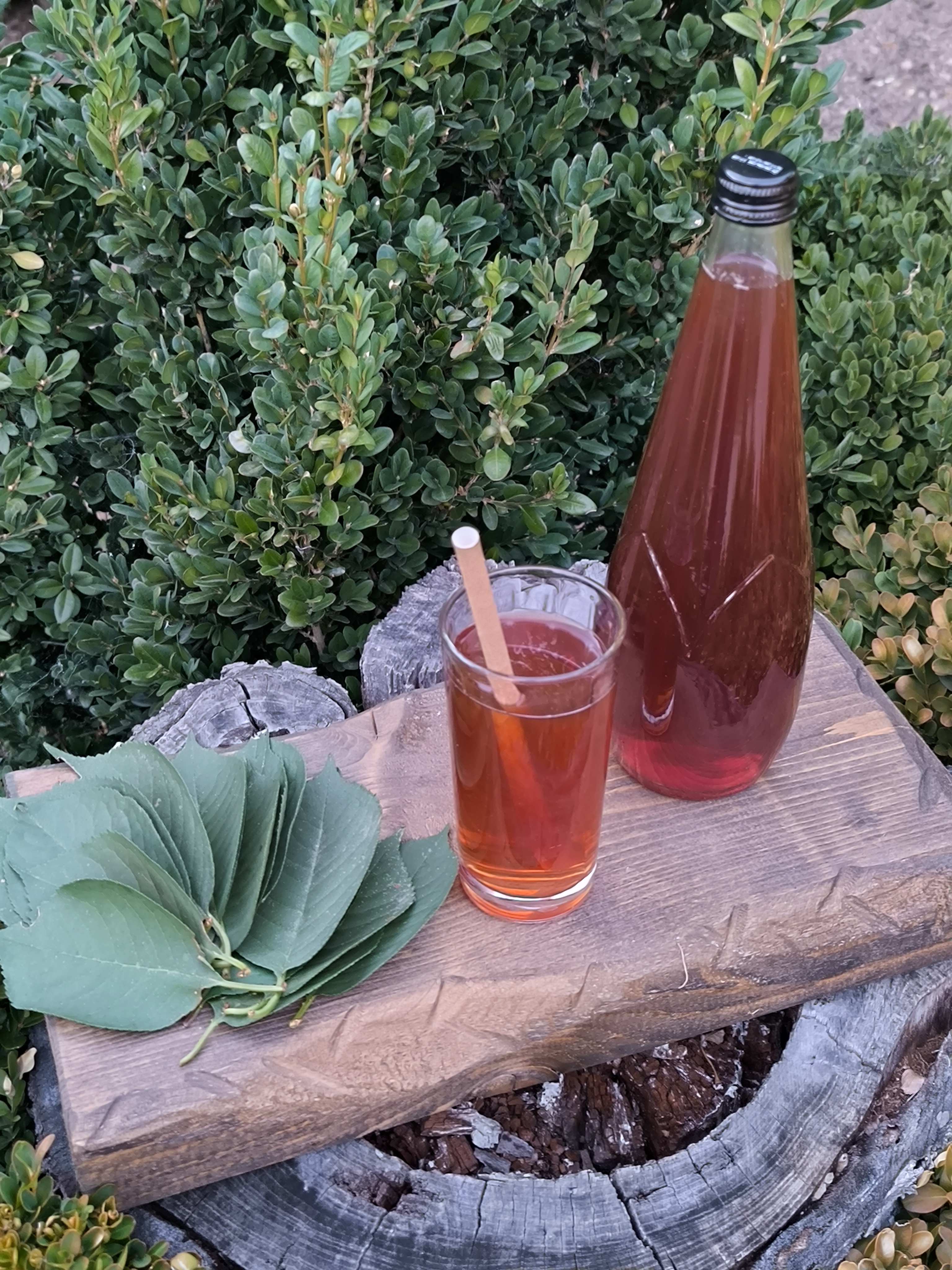 … отстраните листата, за да не стане трапчив сиропа! Най-интересното е, че цветът на сиропа става червен, без да се добавят оцветители и ароматът е на плодовете вишна 🙂